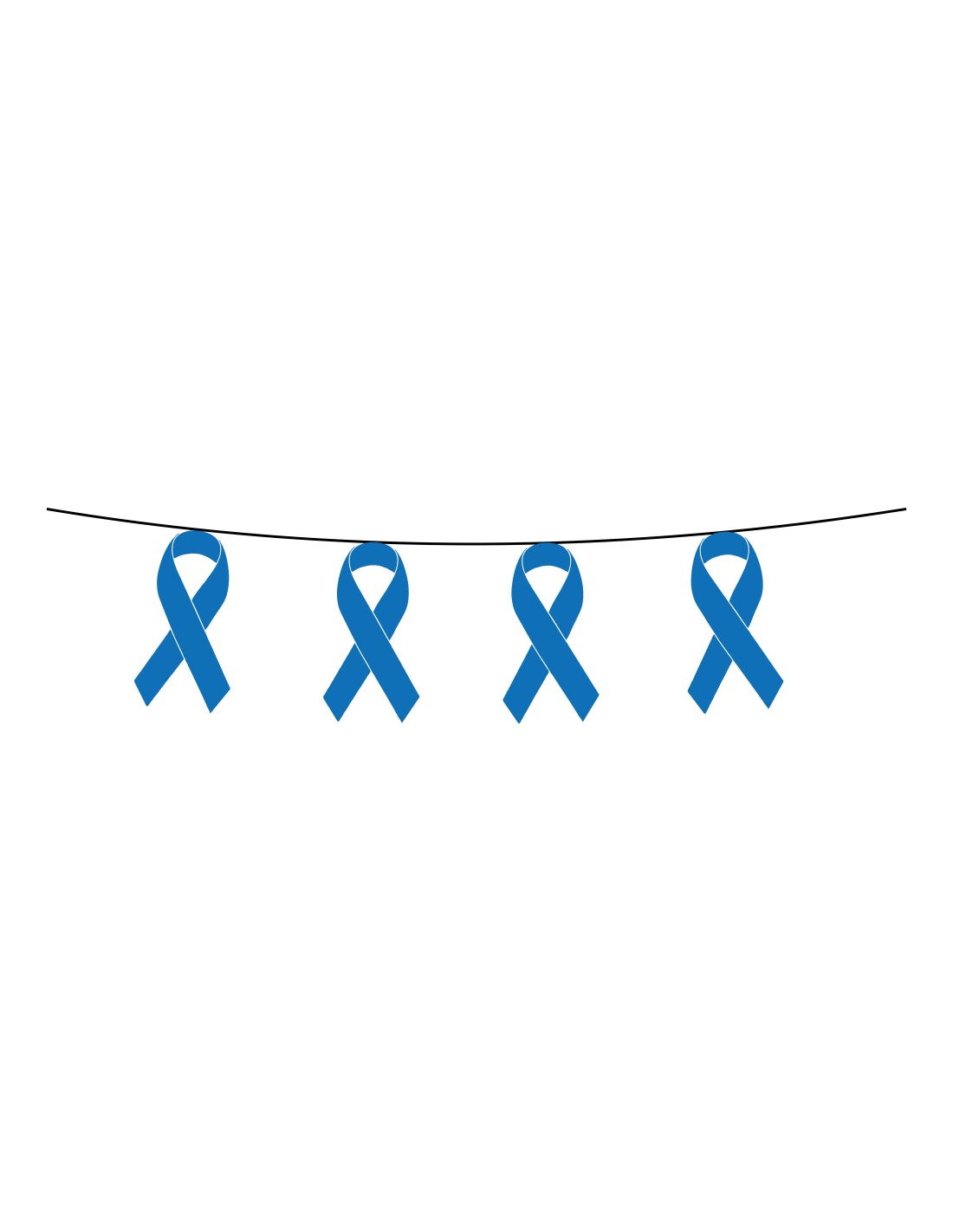 Guirlande ruban bleu pour mars bleu ou Movember. Cette guirlande composé de fanions en forme de ruban, est fabriquée en plastique résistant pour décorer le centre ville lors des périodes de sensibilisation.