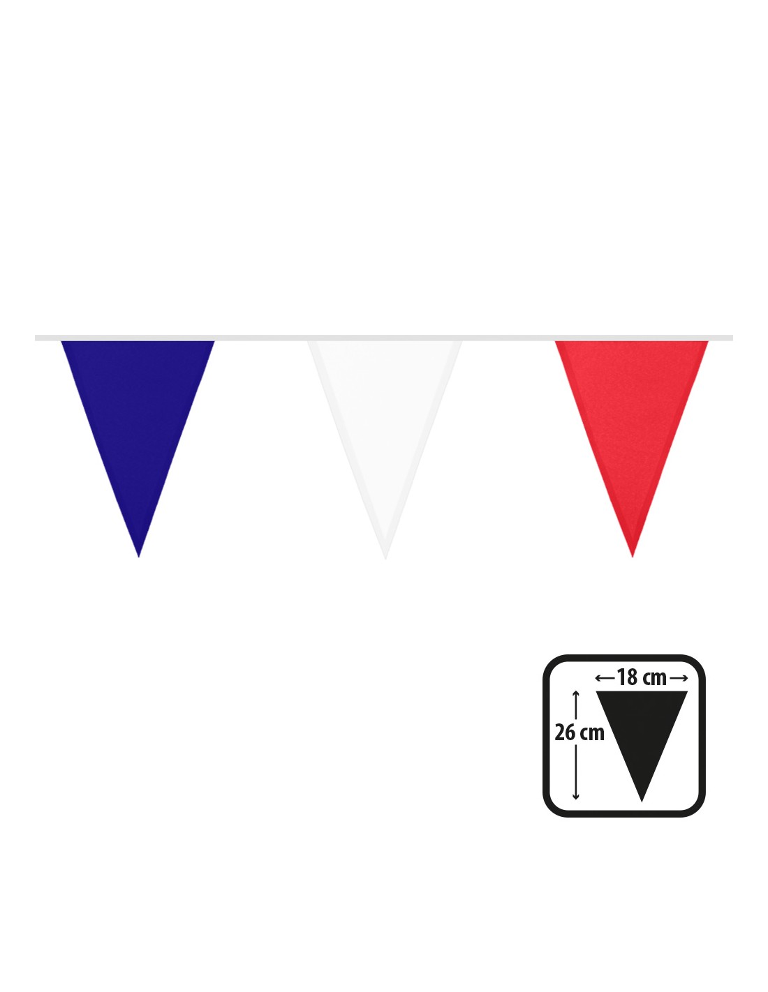 Guirlande fanions triangle bleu, blanc et rouge en tissu polyester 1er prix. Le polyester va vous permettre de facilement réutiliser la guirlande grâce à matière plus résistante. Idéale pour tout évènement national et sportif.