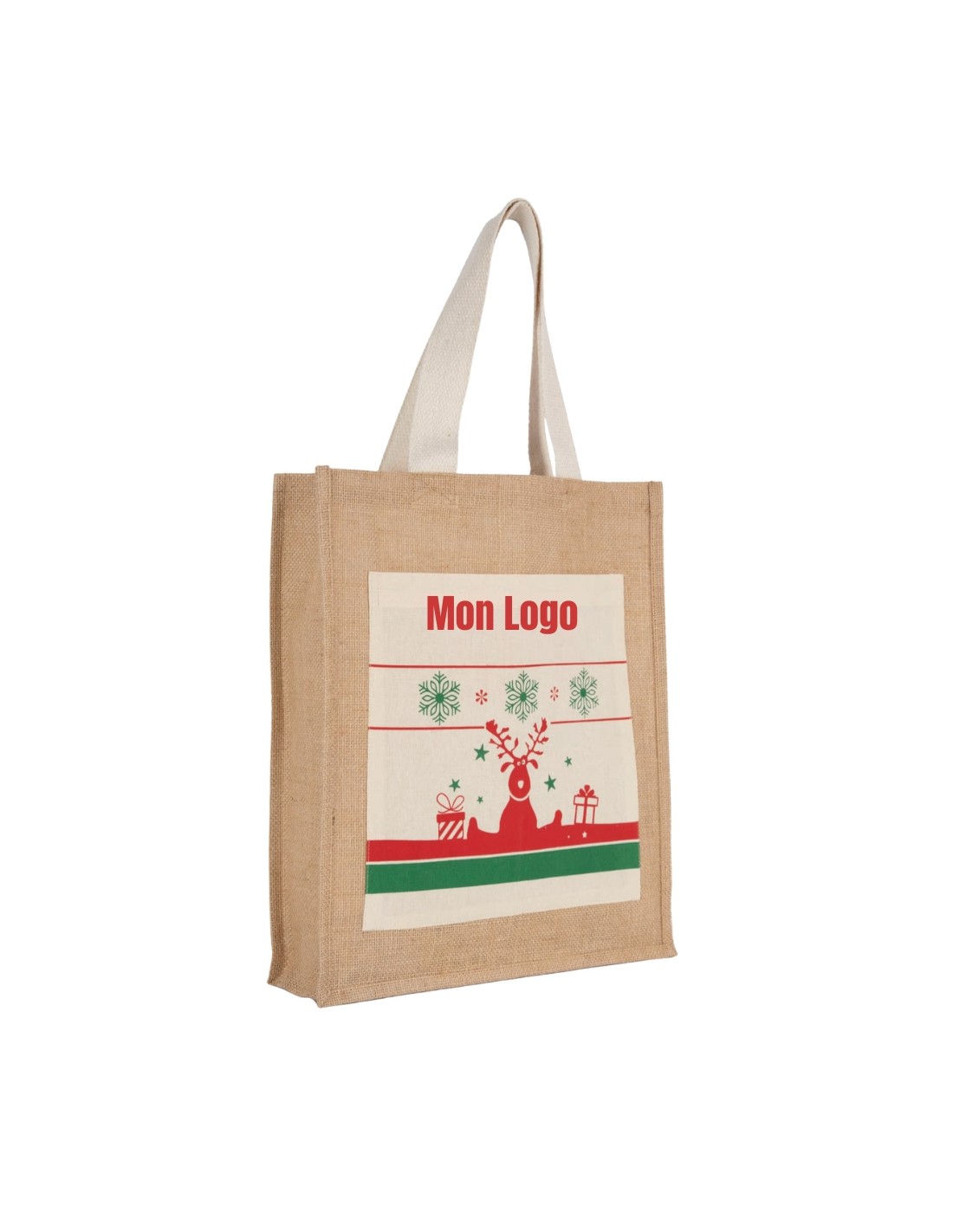 Sac shopping motifs de Noël personnalisable en toile de jute